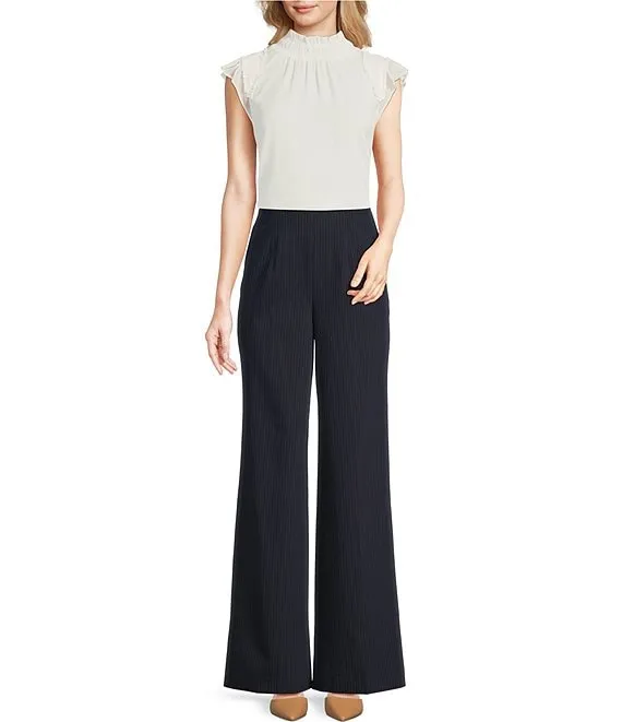 Calvin Klein Chiffon Smocked Mock Neck Cap Flutter Sleeve Top