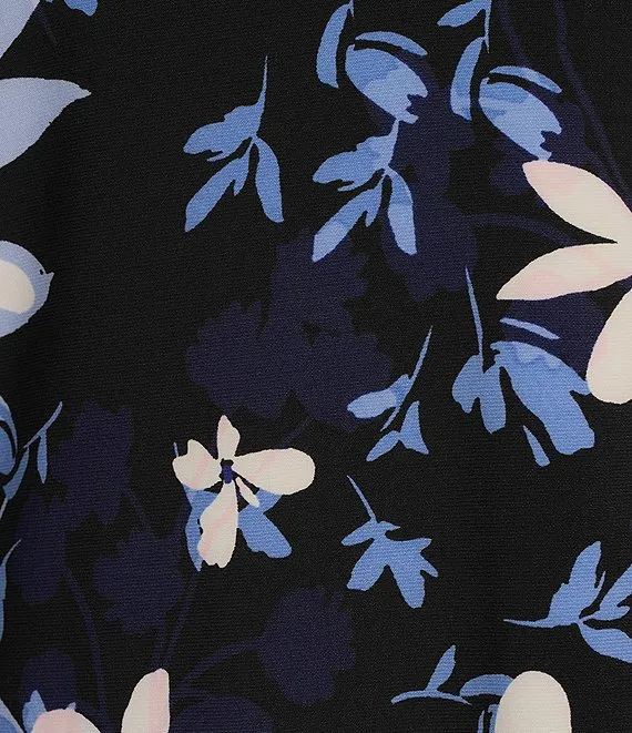 Kasper Crepe Floral Print Split V-Neck 3/4 Sleeve Blouse