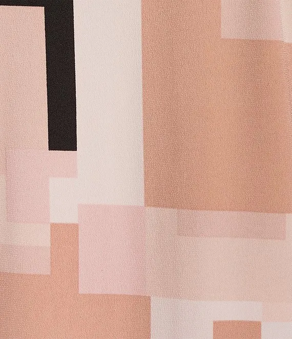 Calvin Klein Geometric Print Pleated Crew Neck Short Sleeve Top