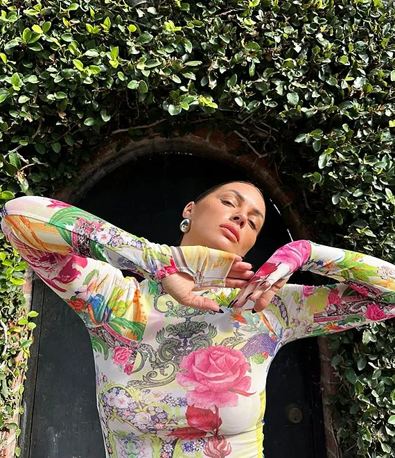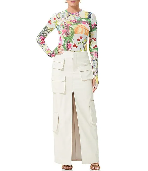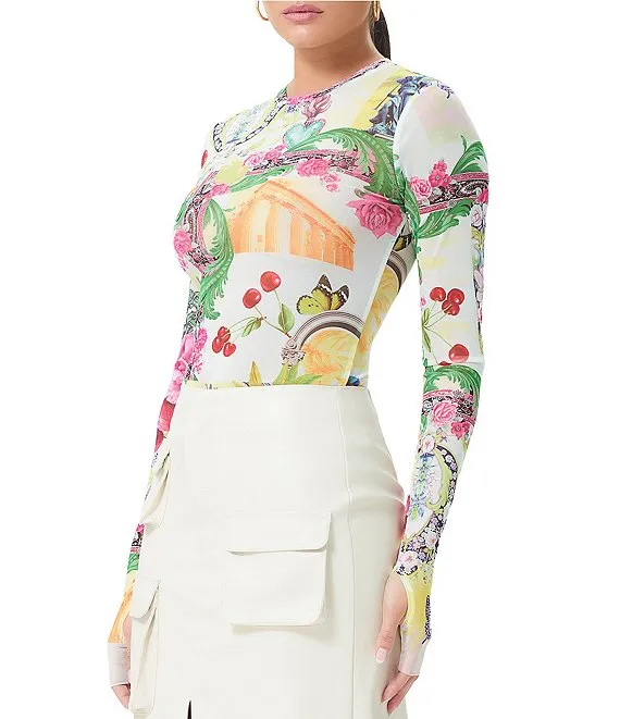 AFRM Kaylee Printed Mesh Crew Neck Long Sleeve Top