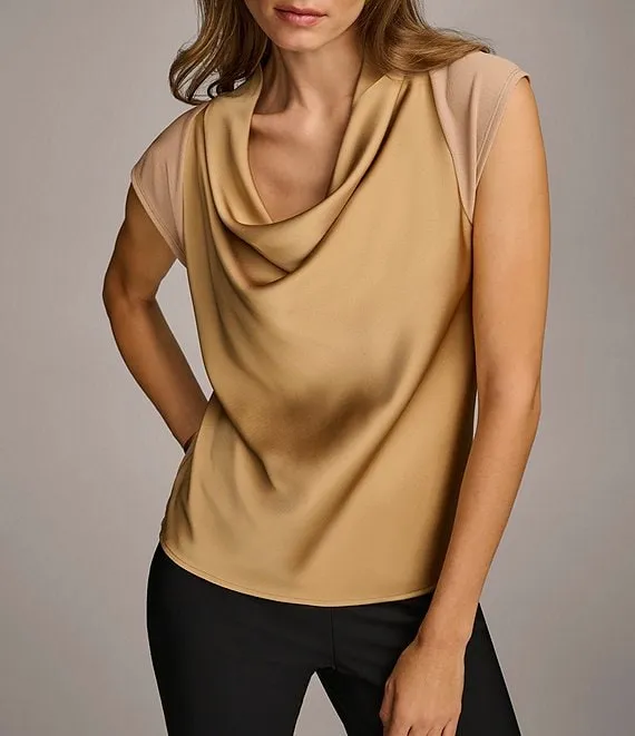 Knit Cowl Neck Short Sleeve Blouse