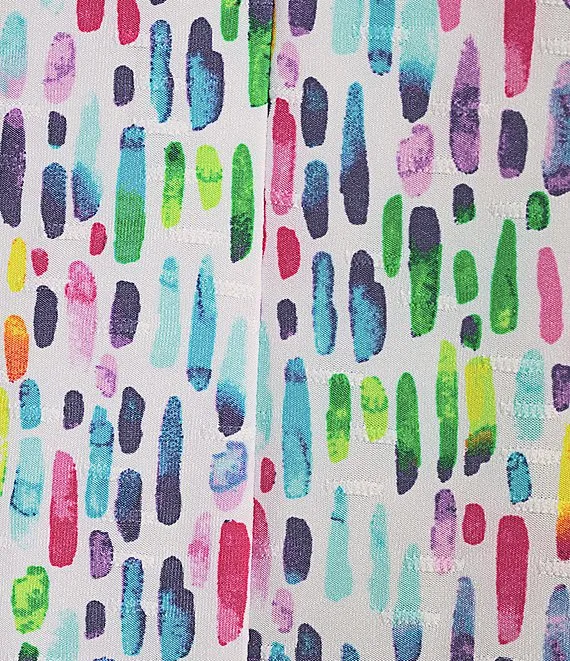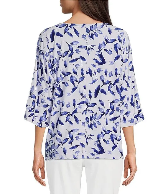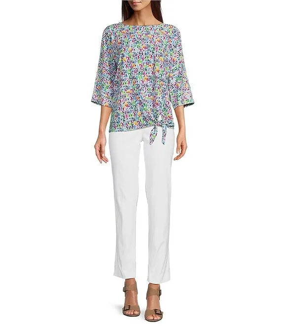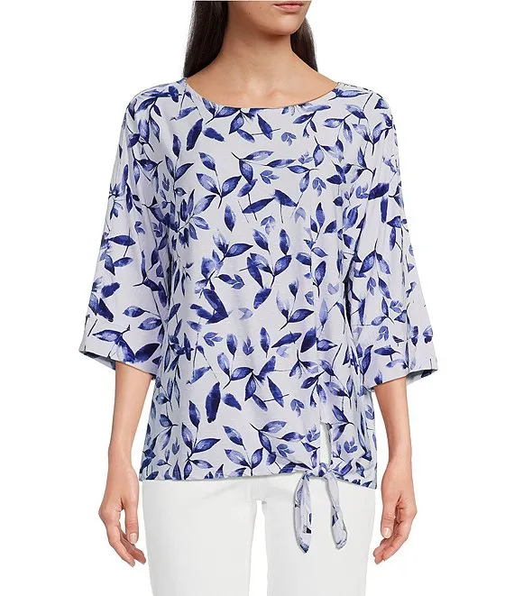 • Line Multi Print Knit Scoop Neck 3/4 Sleeve Side Tie Hem Popover Tunic