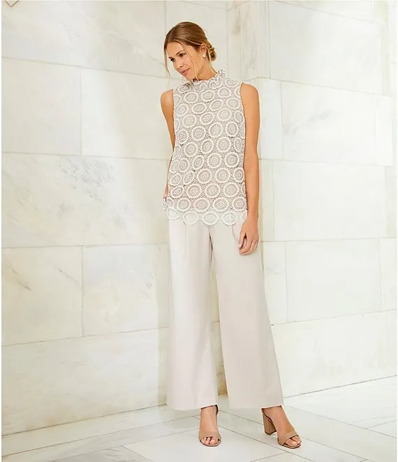 Lorraine Lace Sleeveless Mock Neck Blouse