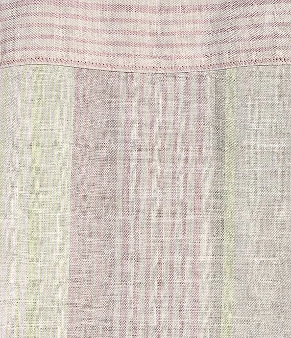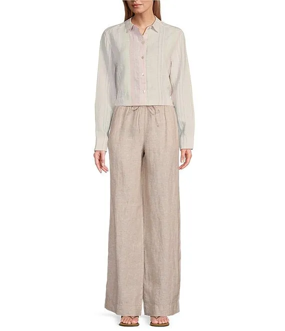 Ocean Reverie Linen Striped Notch Collar Long Sleeve Shirt