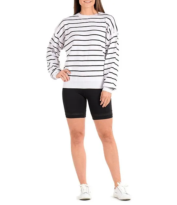 Reagan Stripe Print Cotton Crew Neck Long Sleeve Sweater