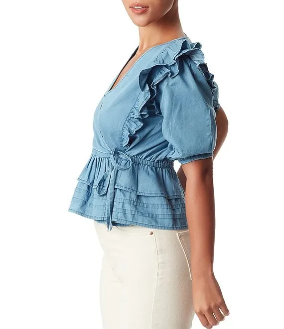 Rina Ruffled Peplum V-Neck Wrap Around Tie Top