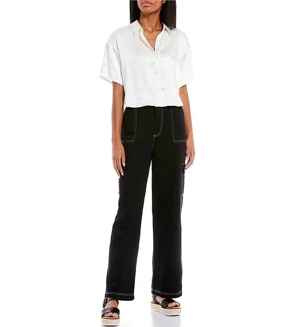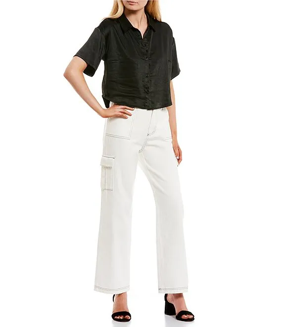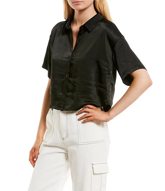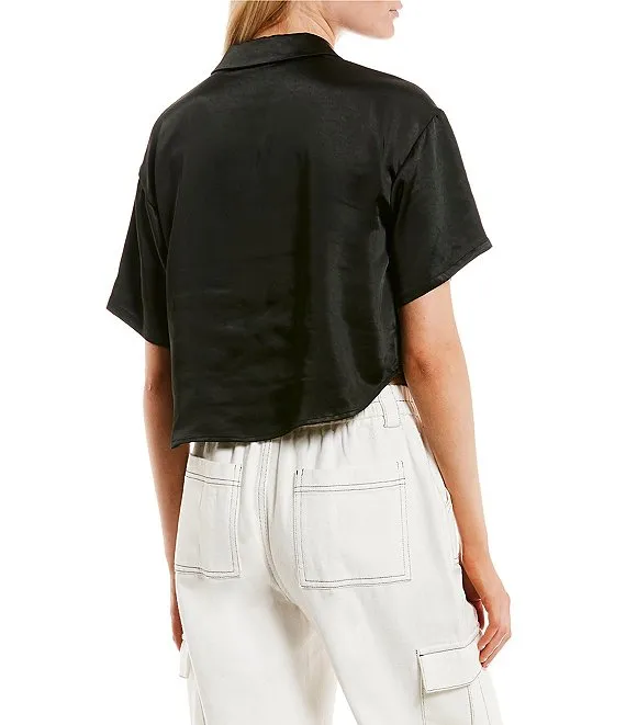 Satin Short Sleeve Button Front Shirt