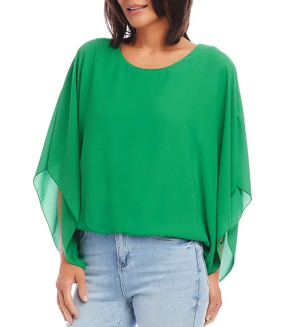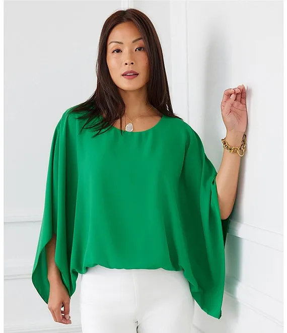 Karen Kane Scoop Neck 3/4 Batwing Sleeve Blouson Scarf Sleeve Top
