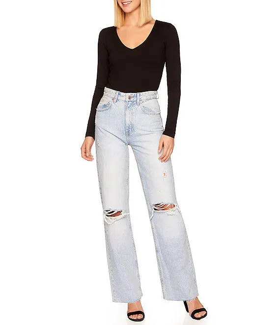 Sexy Signature Stretch Knit V-Neck Long Sleeve Fitted Shirt