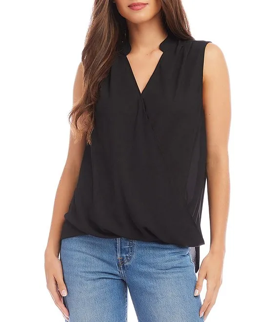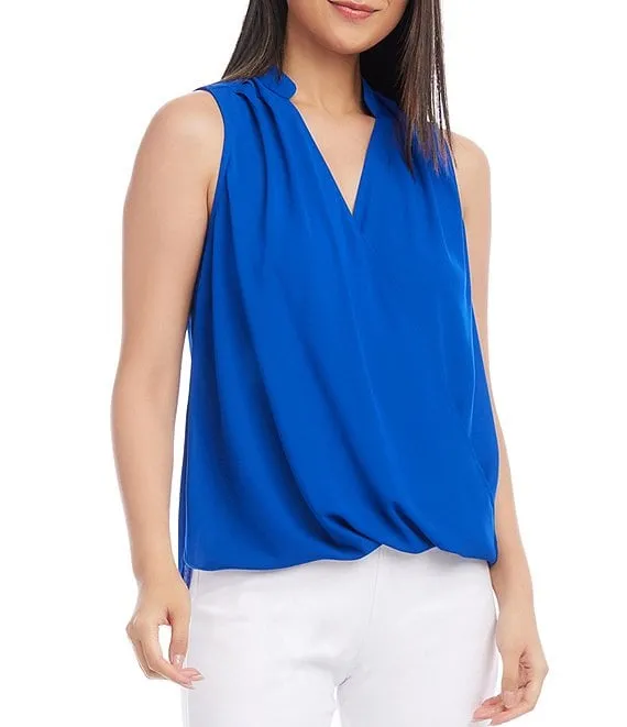 Karen Kane Sleeveless Surplice V-Neck Drape Front Blouse