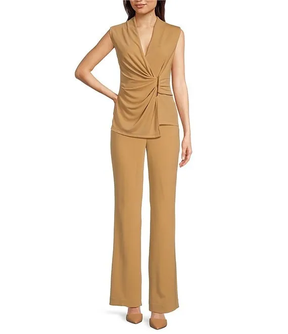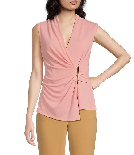 Stretch Sleeveless V-Neck Faux Wrap Top