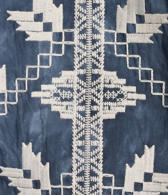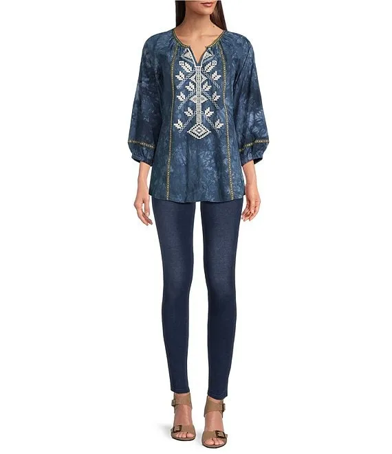 Tie Dye Embroidered Split V-Neck Bracelet Length Sleeve Tunic