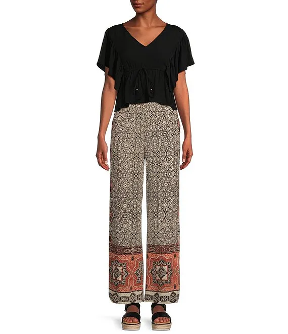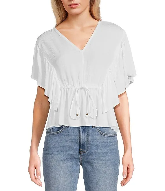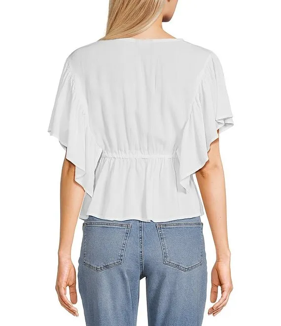 V-Neck Flutter Sleeve Tie Front Top