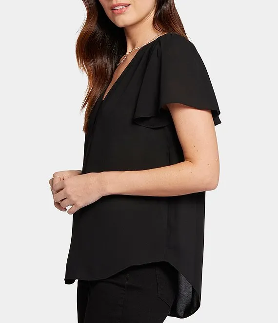 V-Neck Short Flutter Sleeve Pleat Detail Blouse