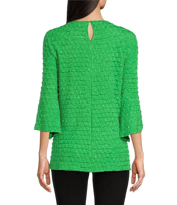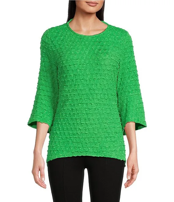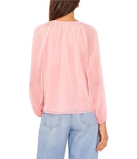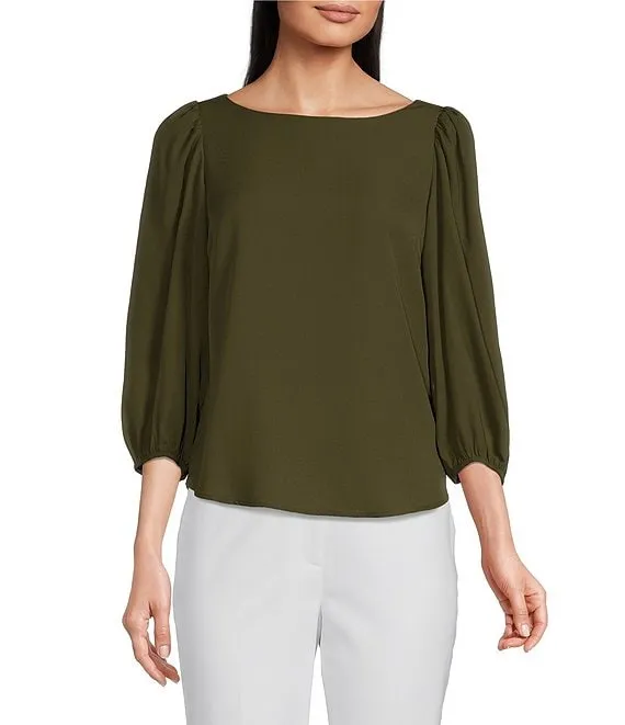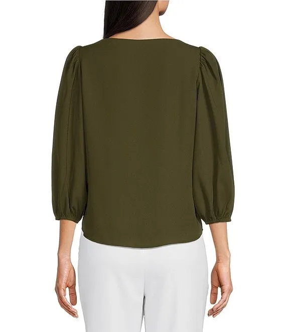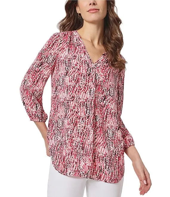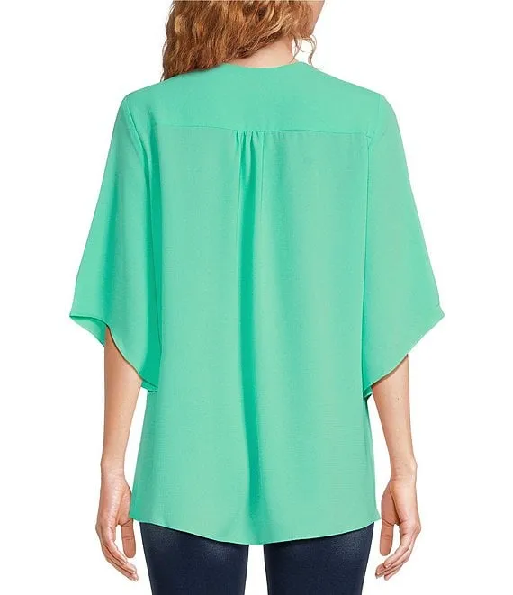 Crepe De Chine 3/4 Sleeve V-Neck Pleat Front Tunic