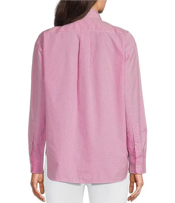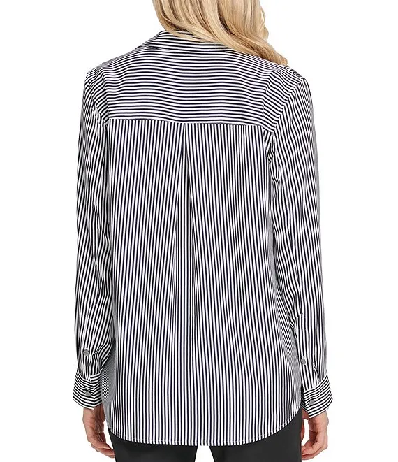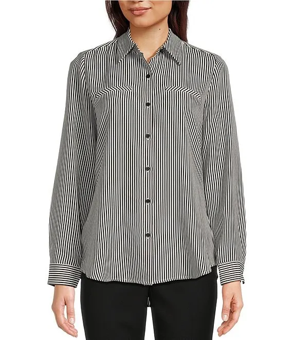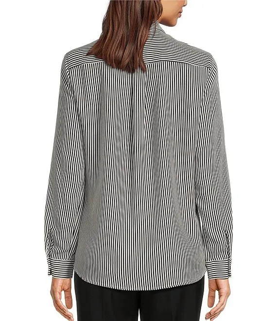 Piper Crepe de Chine Striped Print Point Collar Long Sleeve Button Front Blouse