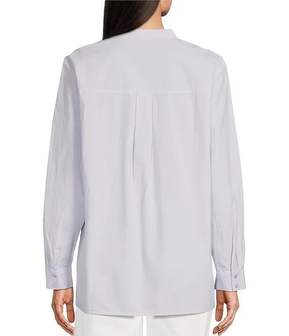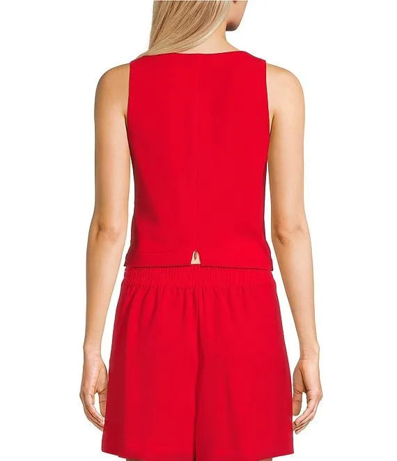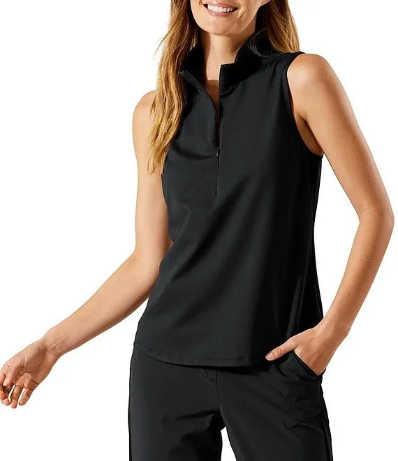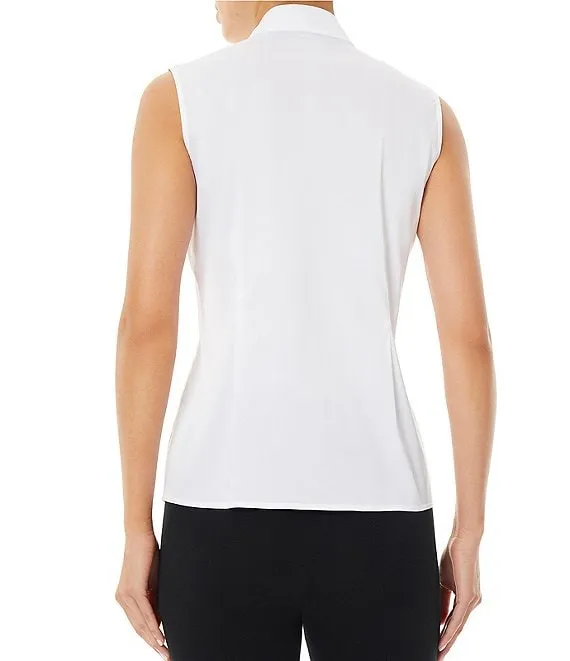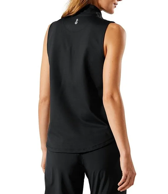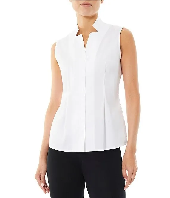 Stretch Cotton Poplin Notched Mock Neck Sleeveless Tank Top