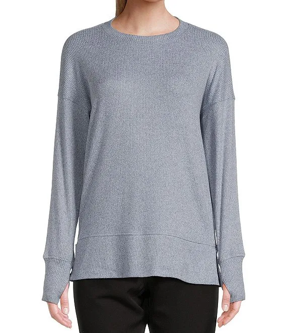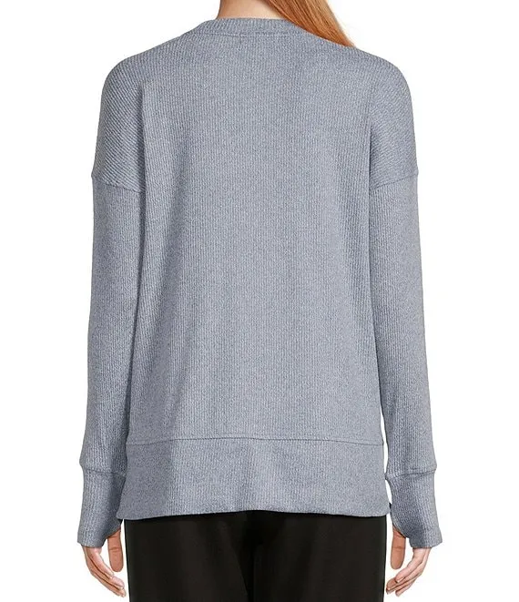 Ribbed Knit Long Sleeve Crew Neck Pullover
