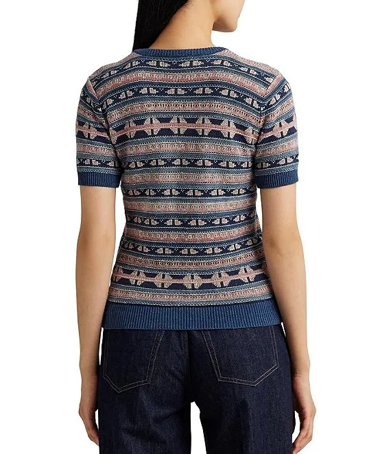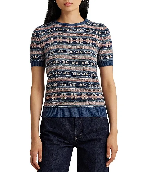 Lauren Ralph Lauren Eyelah Textile Print Crew Neck Ribbed Short Sleeve Top