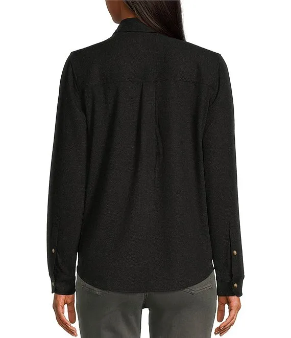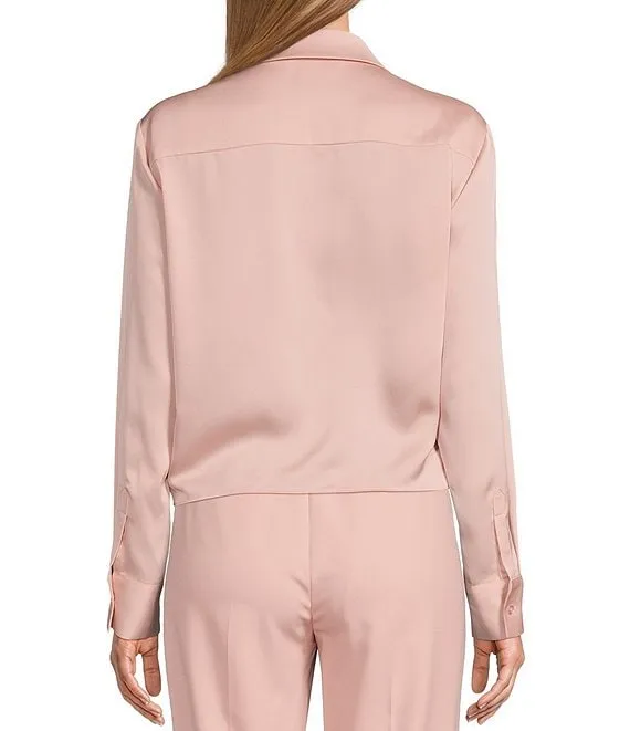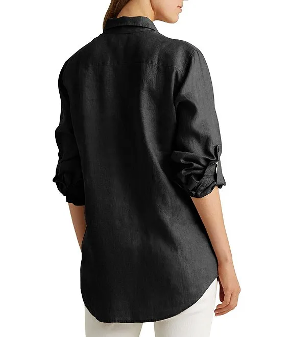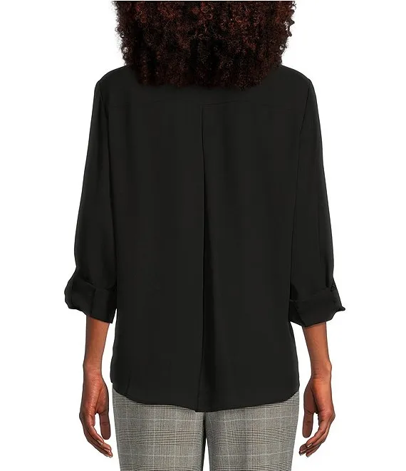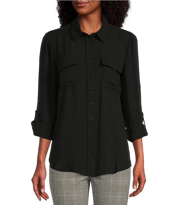 Olivia Point Collar Long Roll-Tab Sleeve Button Front Utility Blouse