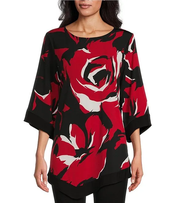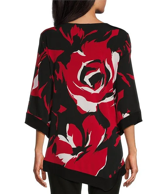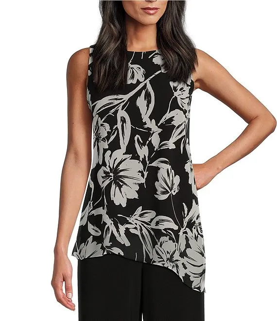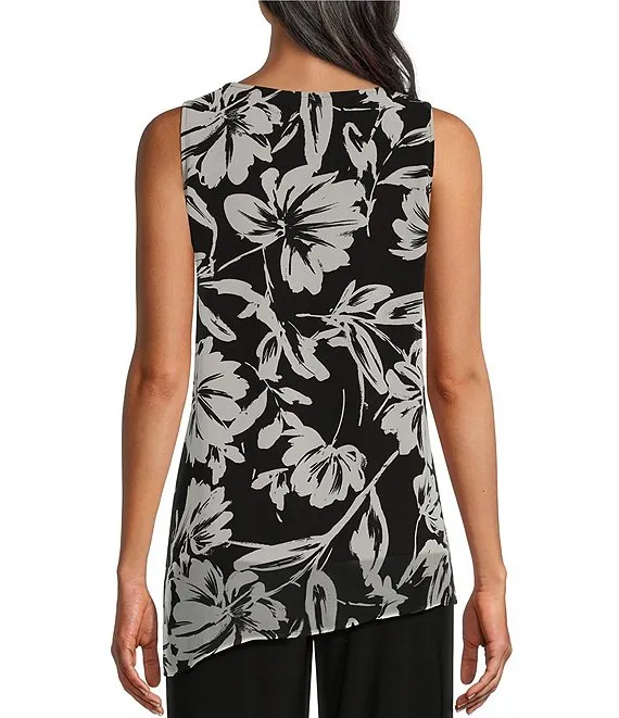 Soft Separates Floral Gestures Print Crew Neck Asymmetrical Hem Tank Top