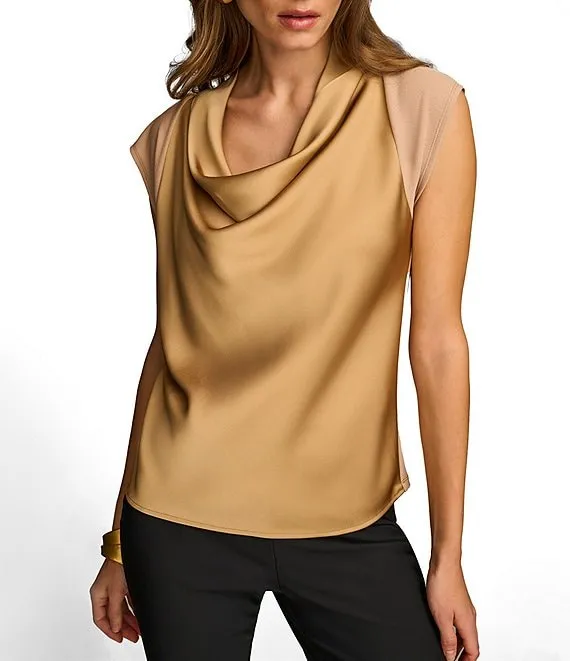 Luxe Crepe de Chine Sleeveless Cowl Neck Tank Top