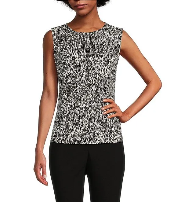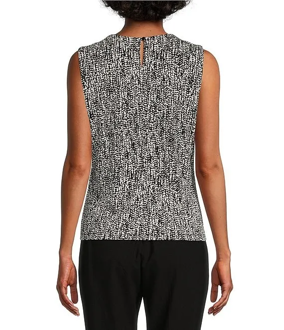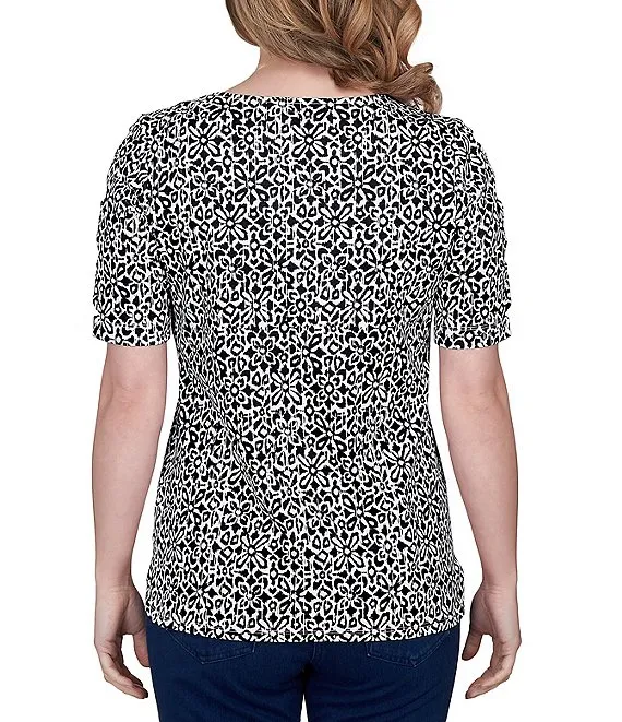 Tile Print Knit Interlock Crew Neck Cut-Out Short Sleeve Shirt