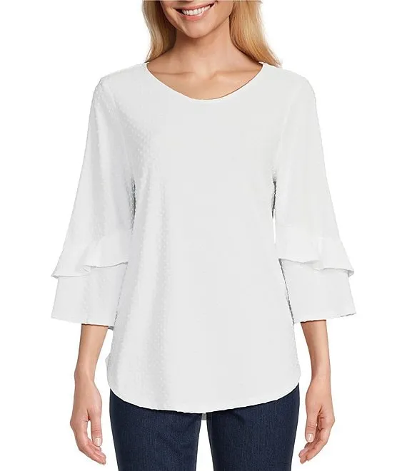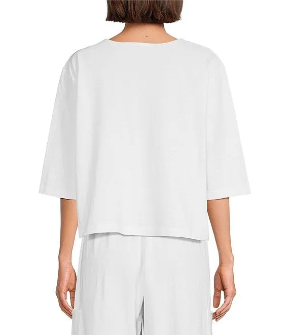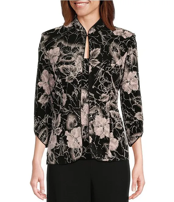 3/4 Sleeve Scoop Neck Mandarin Collar 2-Piece Twin Set