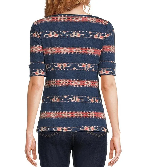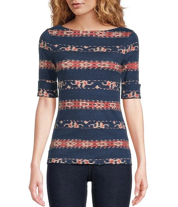 Lauren Ralph Lauren Elbow Length Sleeve Boat Neck Multi Stripe Top