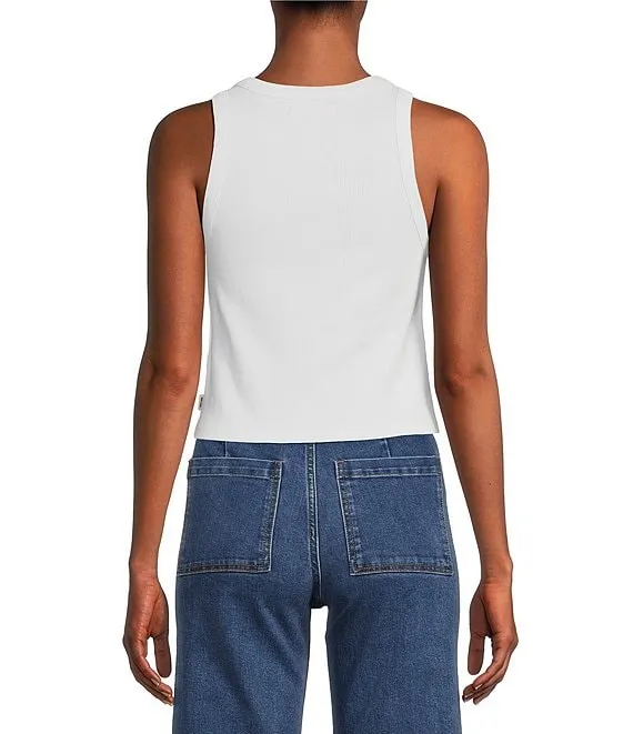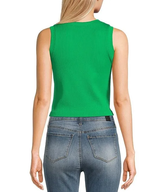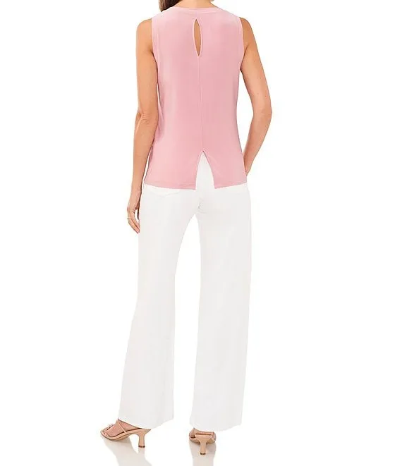 Crew Neck Sleeveless Keyhole Back Knit Tank Top