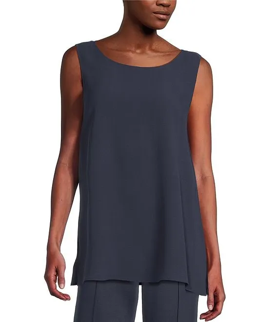 Silk Georgette Crepe Boat Neck Sleeveless Tunic
