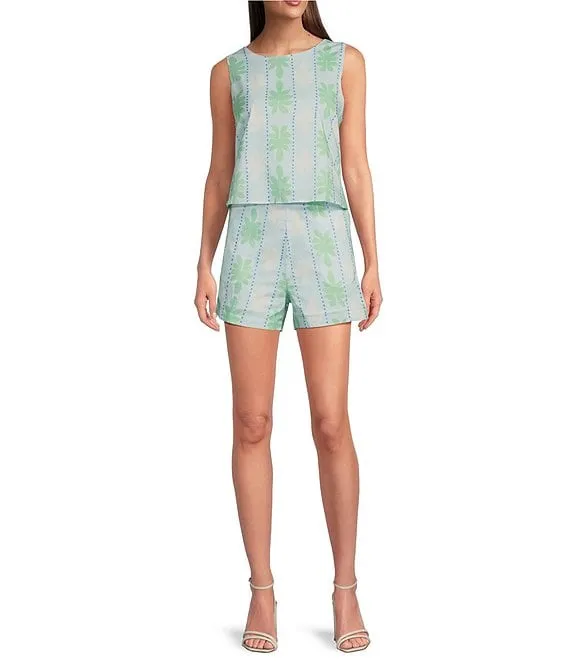 x SARAH & MOLLY Cabana Stripe Print Sleeveless Scalloped Button Back 2-Piece Short Set