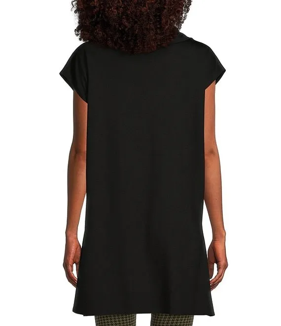 Lavinia Stretch Jersey Modal Ponte Cowl Neck Short Sleeve Crossover High-Low Hem Tunic