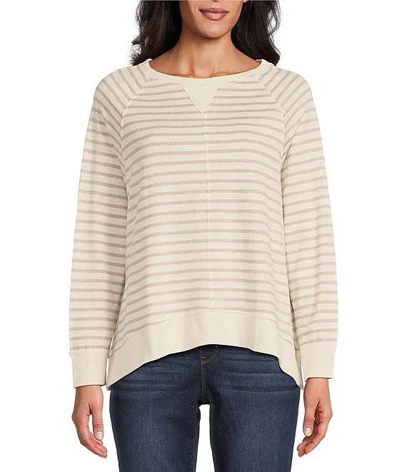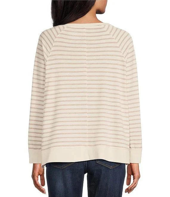Heat Mix Stripe Print Round Neck Long Sleeve Sweater