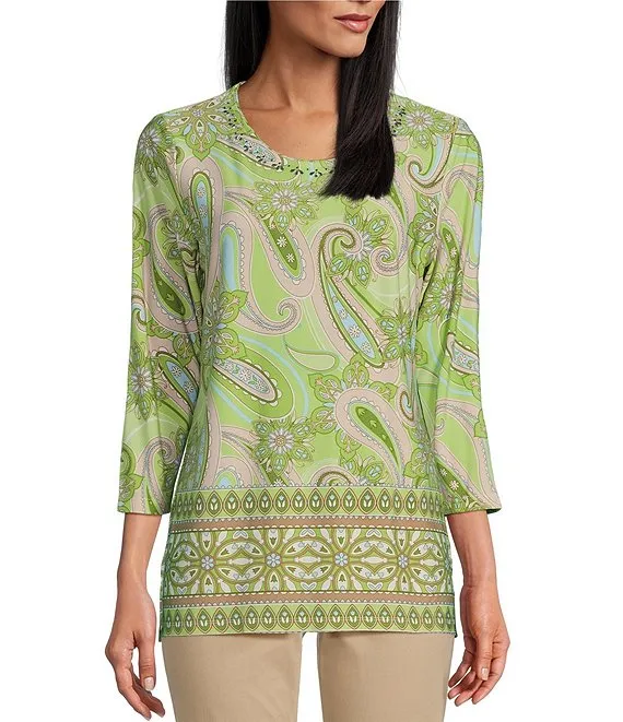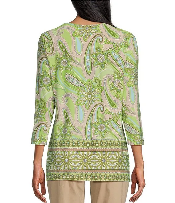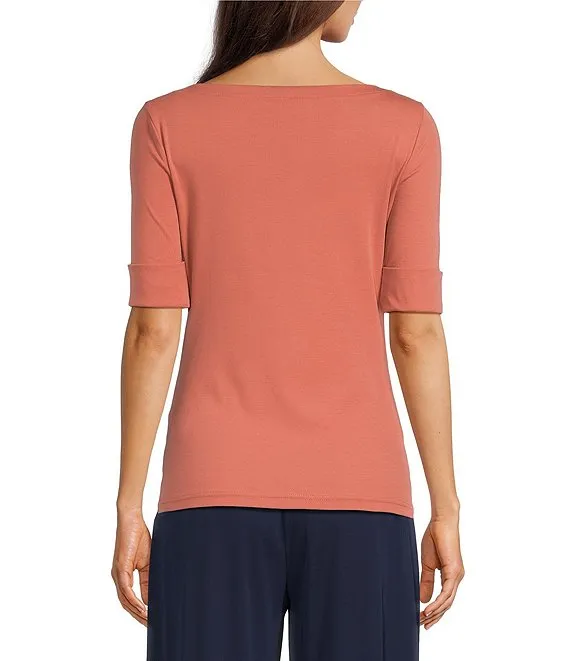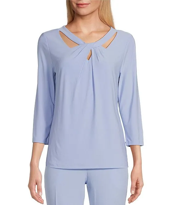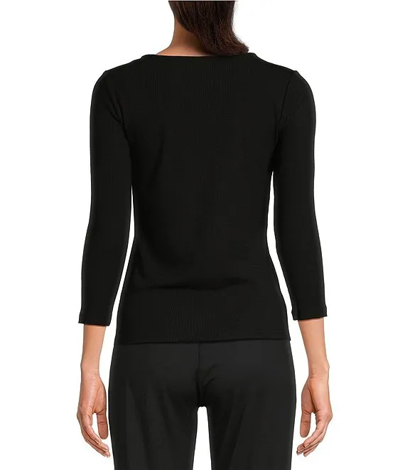 Kasper 3/4 Sleeve Twisted Neck Top
