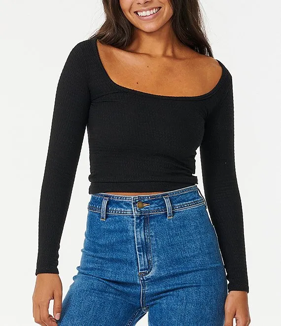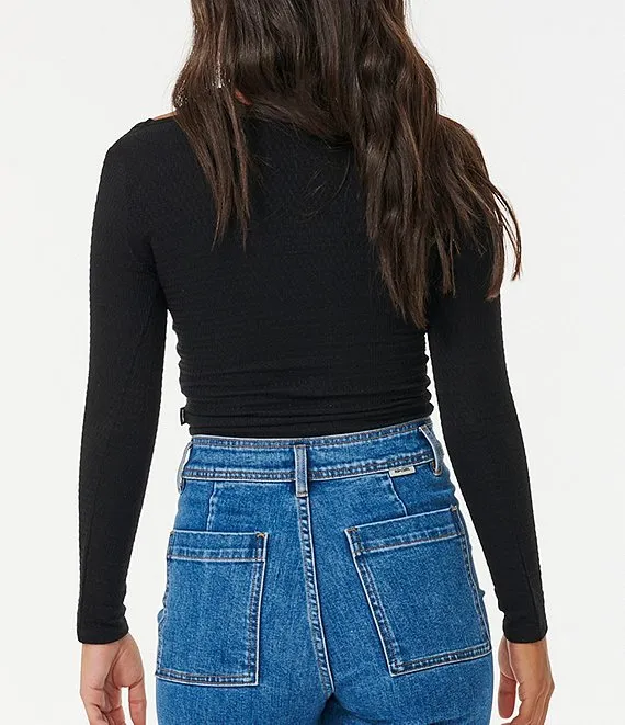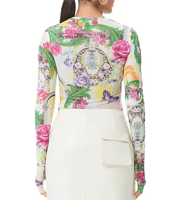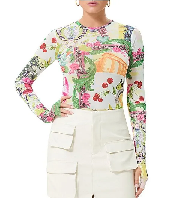 AFRM Kaylee Printed Mesh Crew Neck Long Sleeve Top