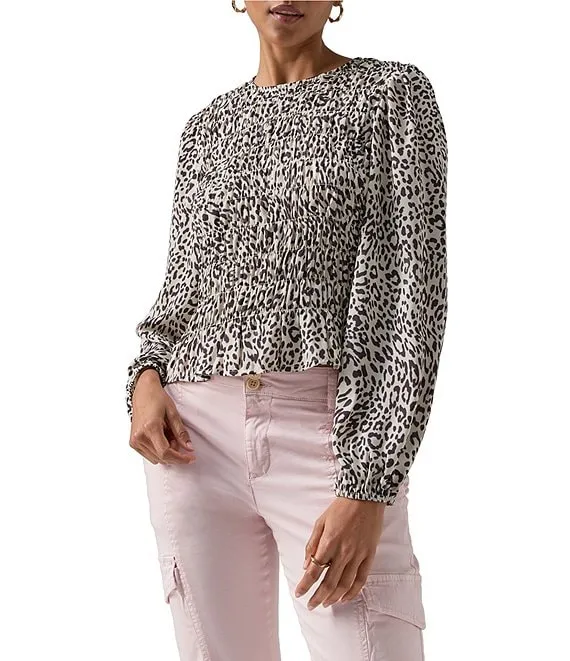 Get Together Animal Print Crew Neck Long Sleeve Smocked Blouse
