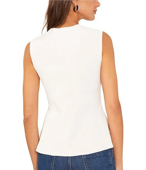 Crew Neck Sleeveless Mixed Ribbed Knit Peplum Top
