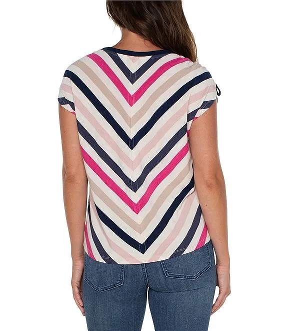 Crew Neck Short Dolman Sleeve Shoulder Tie Stripe Tee Shirt
