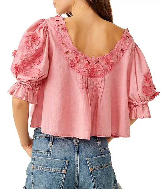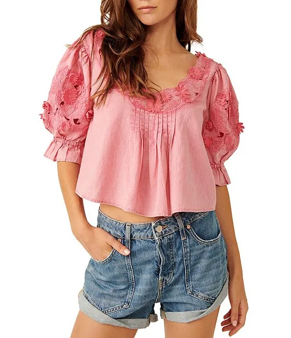 Sophie Embroidered Scoop Neck Short Sleeve Top