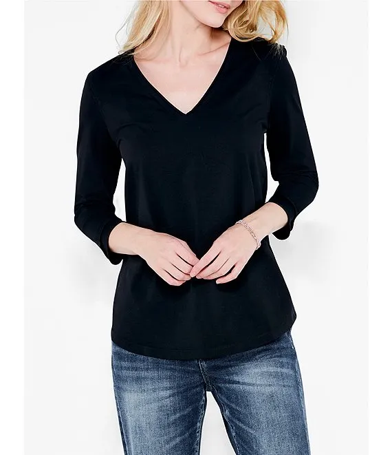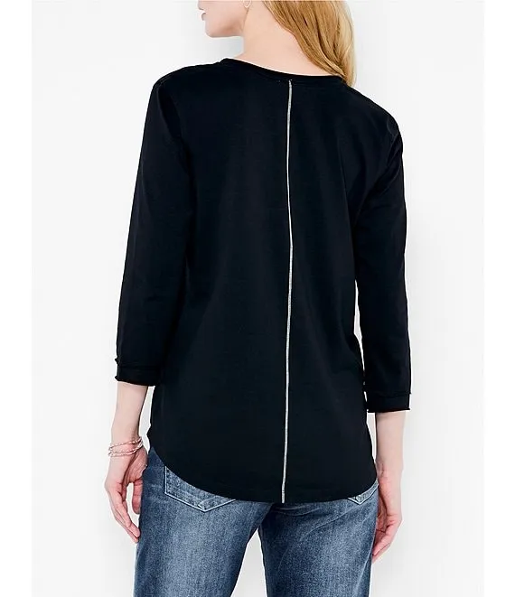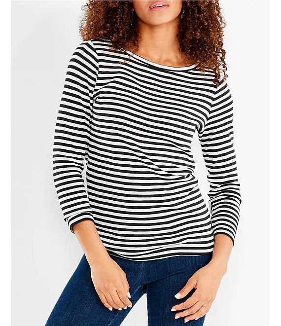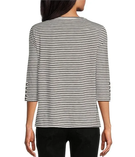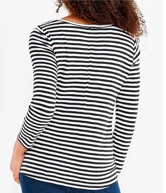 NZT Jersey Knit Striped Print Boat Neck 3/4 Sleeve Tee Shirt