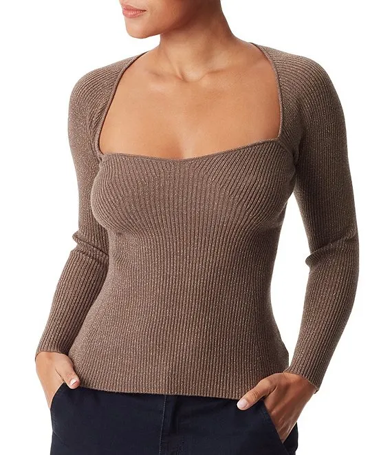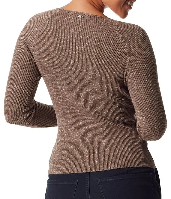 Glitter Jersey Knit 3/4 Sleeve Mock Neck Twinset