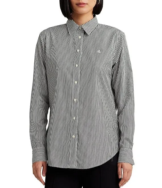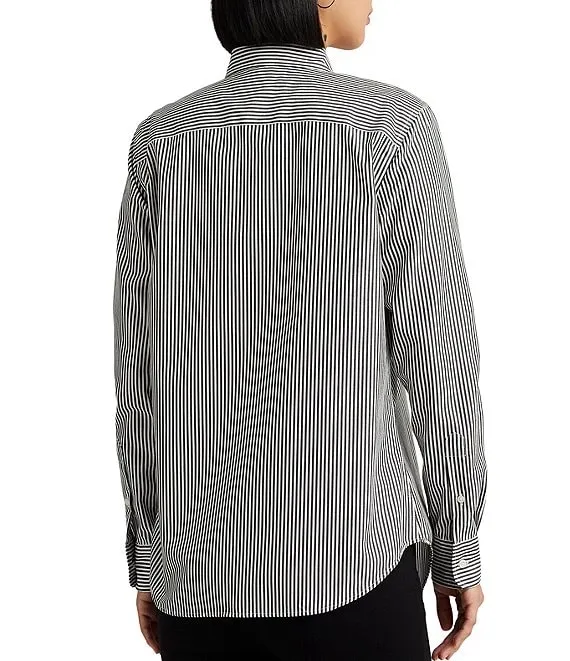 Lauren Ralph Lauren Easy Care Striped Print Point Collar Shirttail Hem Long Sleeve Shirt