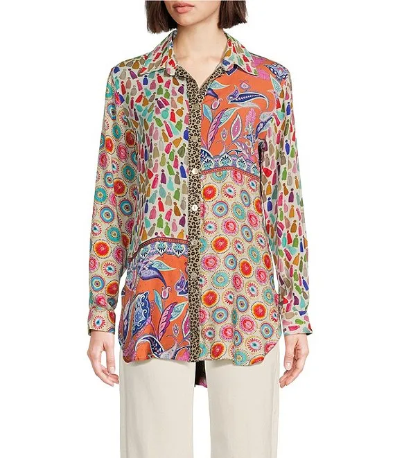 Sunrise Favorite Patchwork Floral Geo Print Long Sleeve Tee Shirt
