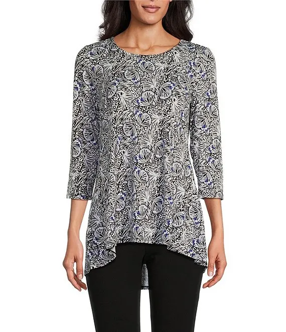 Slim Factor by Investments Waves Print Crew Neck 3/4 Sleeve Lined Tunic