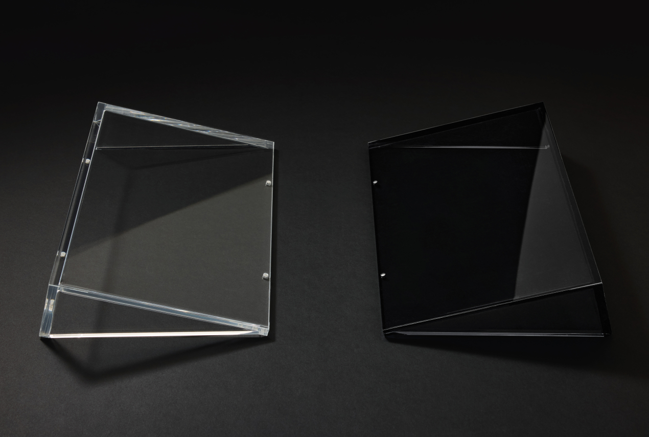 Designed in an exclusive collaboration with M/M Paris, the book includes a bespoke plexiglass box that can be configured as a bookstand. Built from two interlocking pyramids of clear and dark plexiglass, the sculptural box set evokes some of Jodorowsky’s recurring motifs, such as the Incal Light and the Incal Dark, symbolizing opposing forces. At the core of M/M’s graphic interpretation are two bespoke typefaces: the first a modular reinterpretation of medival church stone carved letters (a voice from the past), and the second inspired by Jodorowsky's science-fiction works (a molecular alphabet drawn from an imagined future).