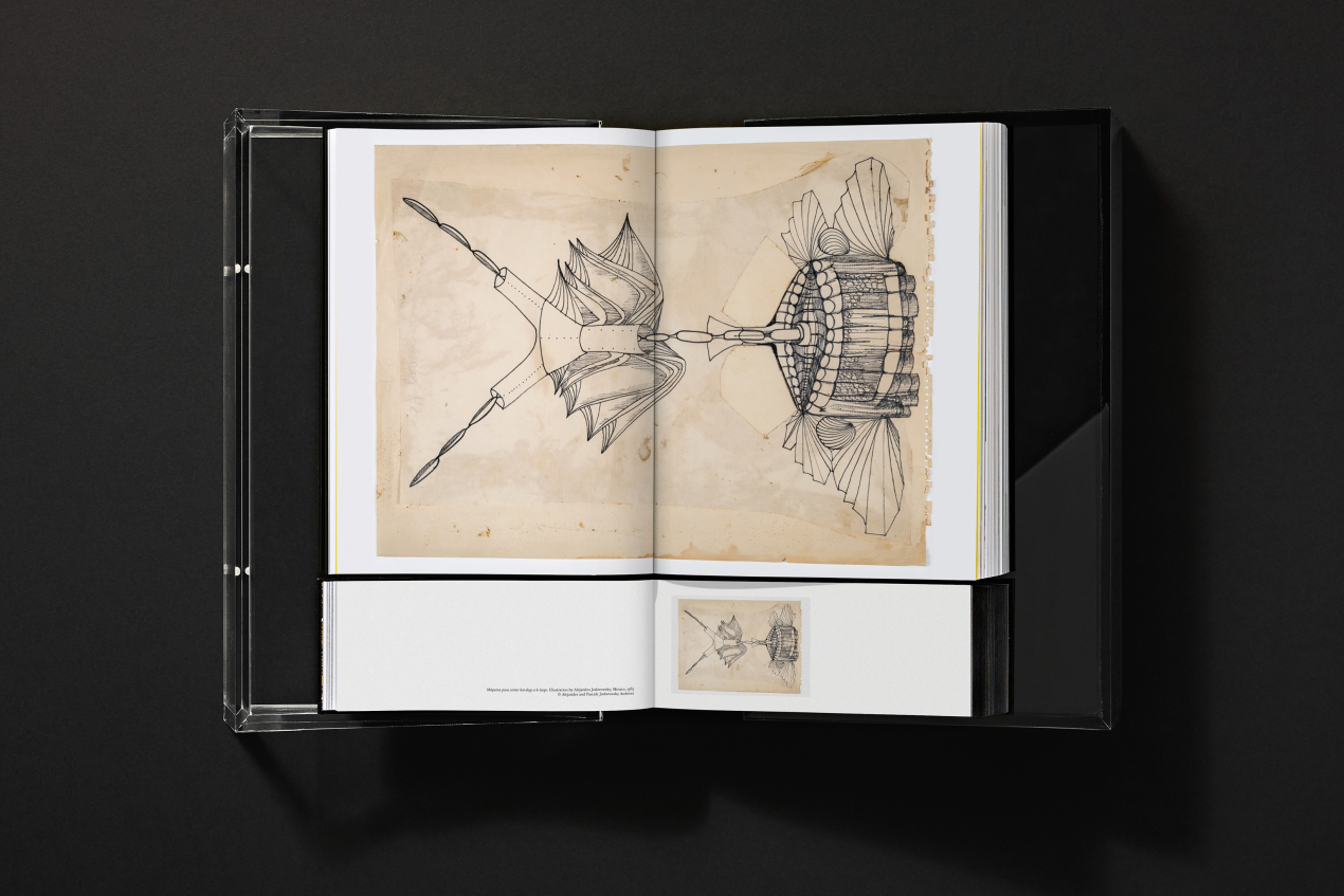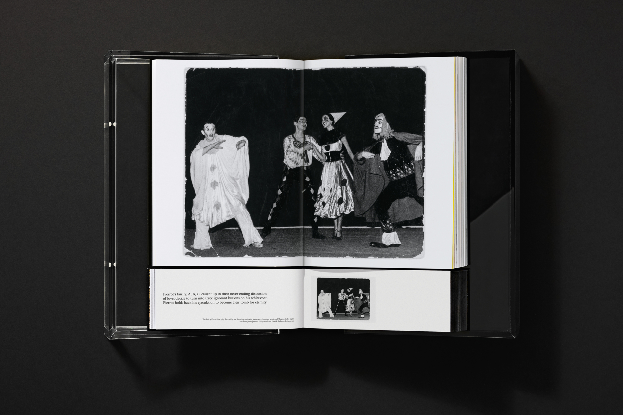 The first volume is a visual feast. The artist has personal chosen and laid-out foldout pages, film stills, performance shots, collages, drawings, and rare photos from his archive. It captures the sheer breadth of his work across cinema, theater, comics, and the art of healing. Following a visual dynamic from image to image, these many works, all selected one by one across films and thousands of pages of comics and archive, create a new narrative – a sensorial one.