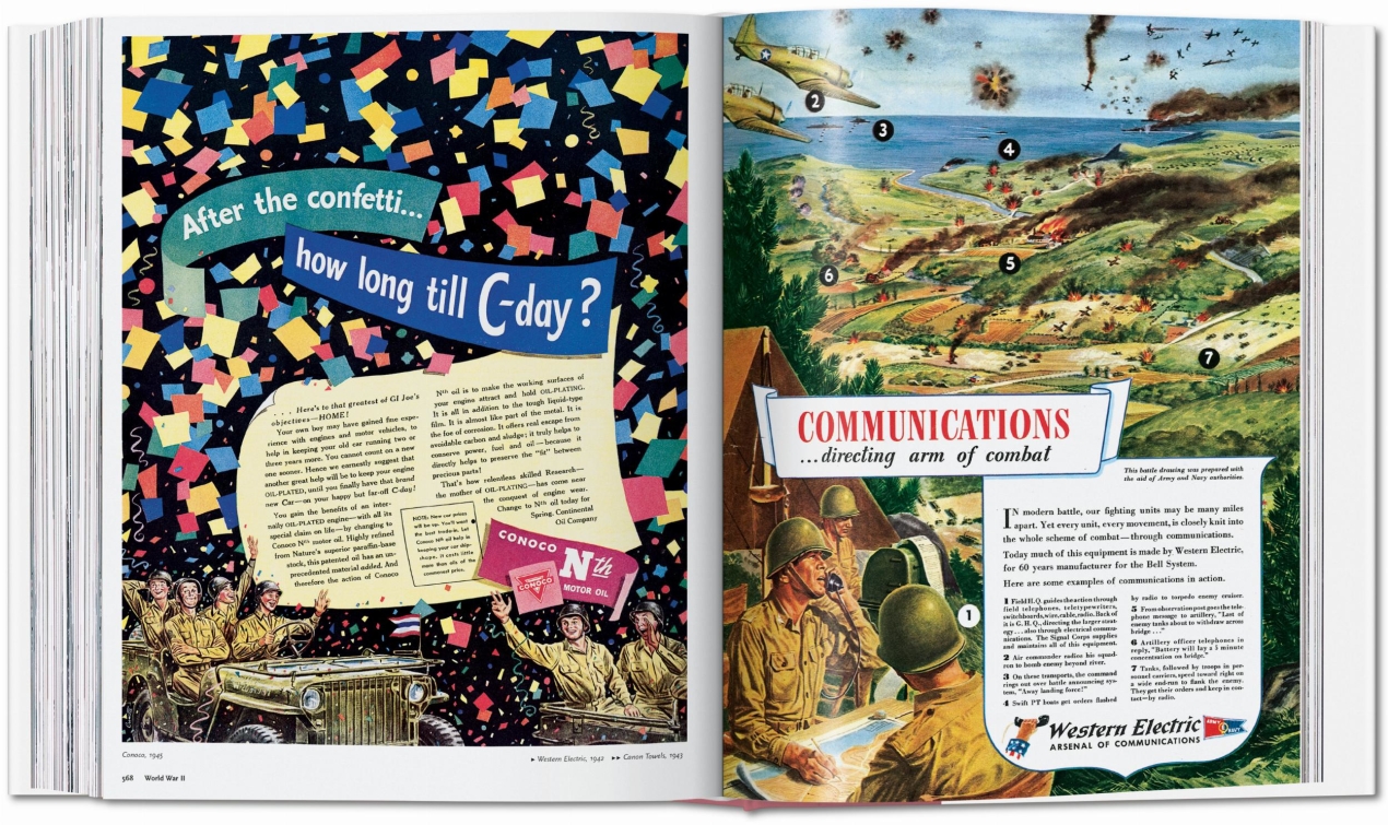 The postwar era represented a flood of products and services for every need and occasion, reaching every corner of society. Everything from entertainment to travel and automobiles, alcohol and tobacco, fashion and beauty, and food and beverage was in high demand and within reach. This period opened the floodgates of buying as advertisers sought to meet the needs of a population recovering from years of rationing. This engaging collection edited by Jim Heimann dives into the frenetic, lively, and brilliant era of American life and advertising in the 1940s.
