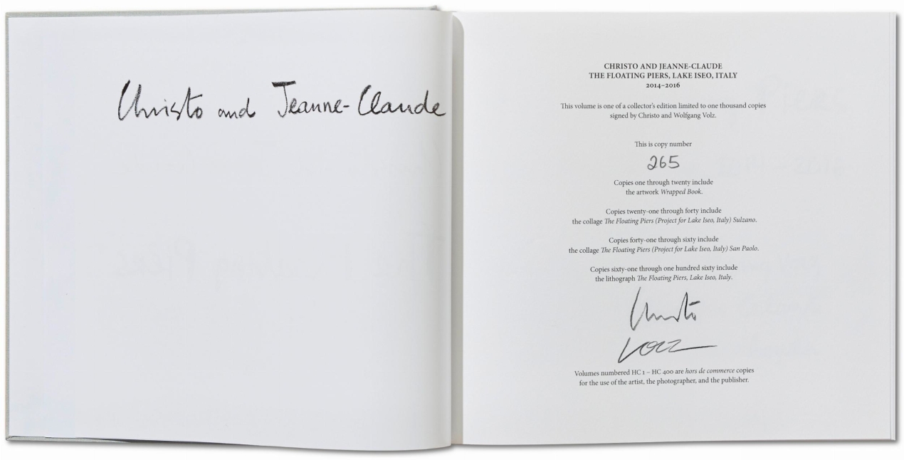 Wolfgang Volz has worked with Christo and Jeanne-Claude as the exclusive photographer of their works since 1971. He was also project director (with Roland Specker) for Wrapped Reichstag, Berlin, 1971–95 and (with Josy Kraft) for Wrapped Trees, Riehen, Switzerland, 1997–98, and was in charge of The Wall – 13,000 Oil Barrels, Gasometer Oberhausen, Germany, 1998–99 and Big Air Package, Gasometer Oberhausen, Germany, 2010–13. His close collaboration has resulted in many books and more than 300 exhibitions in museums and galleries around the world.Christo and Jeanne-Claude. The Floating Piers. Art Edition No. 41–60 (Collage)
