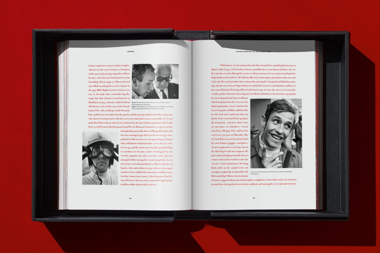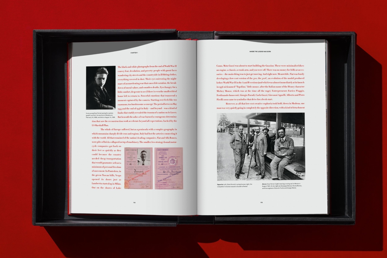 A project conceived in close collaboration with Ferrari, this stylish edition features exclusive content from the Ferrari Archives and private collections around the world. It brings together many unseen photographs, sketches, and original documents related to famed Ferrari drivers like Ascari, Fangio, Hawthorn, Phil Hill, Surtees, Lauda, Scheckter, and Schumacher, revealing the stories behind Ferrari’s victories, its key protagonists, and its legacy. There’s also a comprehensive, never-before-seen appendix cataloging every victory since 1947.
